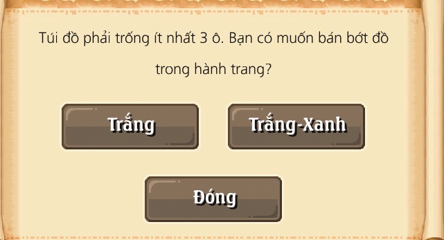 admin nên để nó bên thanh tool, chuyển sang chức năng bán đồ nhanh , trong đó có các chức năng chỉ bán đồ trắng , bán đồ xanh , tím VVVV , ai dùng cái nào tích vô đấy , bên admin tối dạ vl