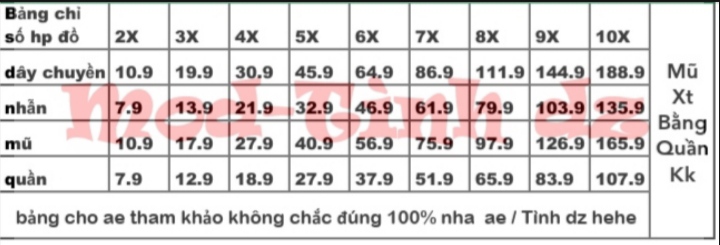 chỉ số đồ hp là như nhau nhaa