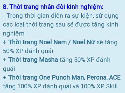 Đang x2 dame vào quái đc +60xp thì nó có tính thời trang ko ?
