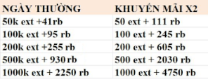 x2 mọi hình thức nạp