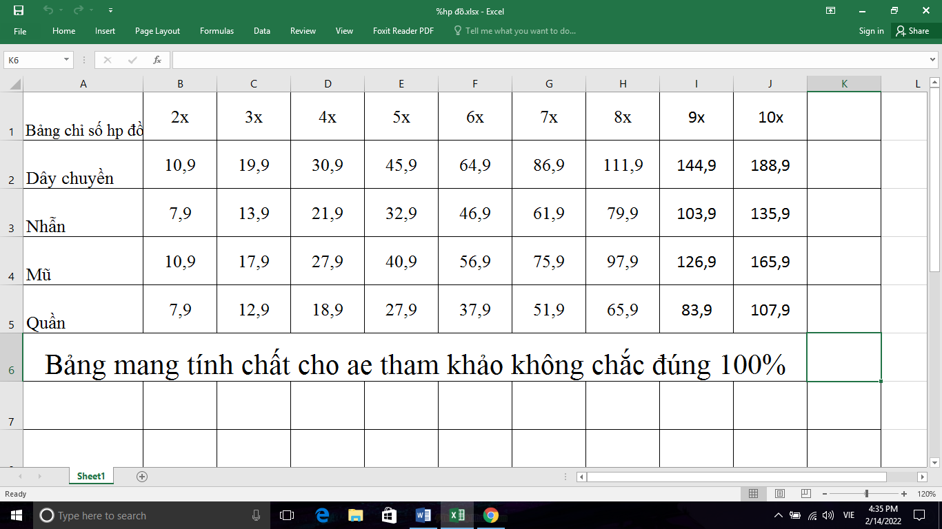 Xin bảng chỉ số đồ