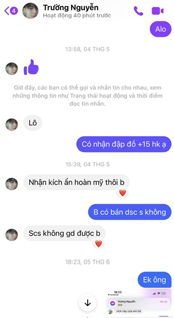 Ad giao dịch đã đền cho mình rồi, còn lý do phá nik là do bug ht6 nên ko lq đến chủ nik trước, chủ nik trước chỉ xác nhận số đá với đồ đó là có trước khi mình mua nik thôi