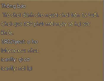 Dành cho người chơi trên 12 tuổi. Chơi quá 180 phút một ngày sẽ hại sức khỏe.